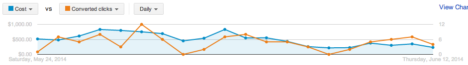 Egy viszonylag új fiókhoz tartozó ügyfél 50%-os csökkentést kért a hónapra. Május 3-án el is kezdődött a költségek agresszív csökkentése. A legtöbb hiábavaló költés redukálódott, de még mindig sok volt a haszontalanul elköltött összeg. Tartalmi hálózat elhelyezéseit szüneteltették (fentebb említett lépések alapján), néhány nagy kiadást eredményező kulcsszóval együtt.